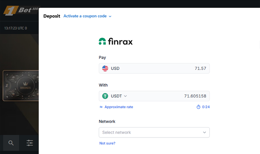The transfers, however, are a little less direct than you'd find at other crypto casinos, going through Finrax. But if you came here looking for a crypto casino, then yes, the long and the short of it is that 1Bet would qualify as such, with the ability to gamble in cryptos definitely being an option.